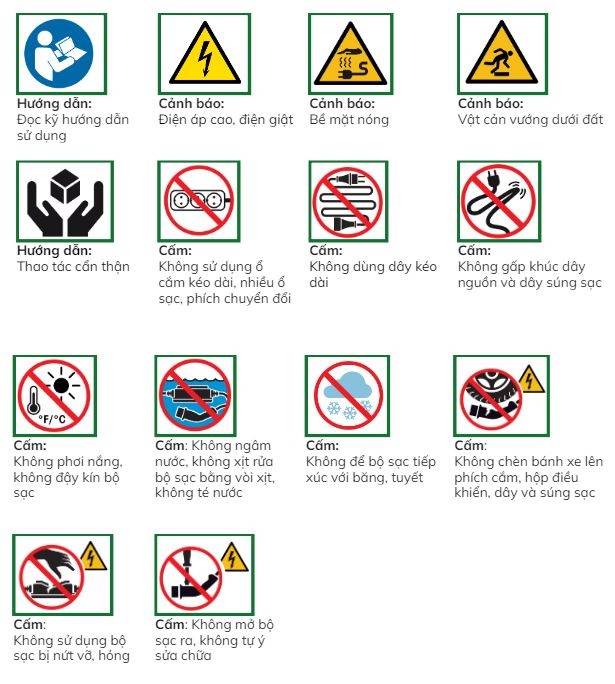 ·         Không dùng để sạc cho xe của các nhà sản xuất khác.